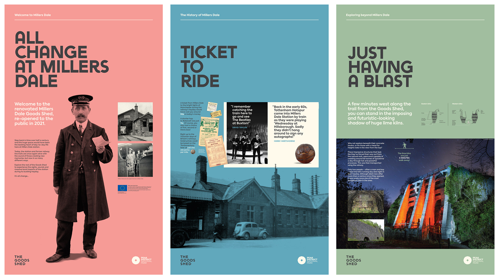 Banners for the refurbished Goods Shed at Millers Dale, Derbyshire.